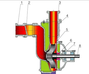 1进口接管 2进口单向阀 3出水接管 4泵体 5叶轮 6机械密封 7轴承座 8泵轴