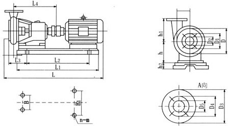 【FSB型氟塑料合金离心泵】安装尺寸图: