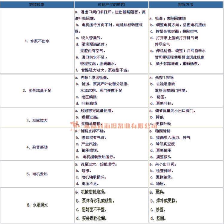 【ISG型立式管道离心泵】故障原因及排除方法: