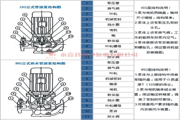 1. ISG立式管道离心泵,供输送清水及物理化学性质类似于清水的其他液体之用,适用于工业和城市给排水、高层建筑增压送水、园林喷灌、消防增压、远距离输送、暖通制冷循环、浴室等冷暖水循环增压及设备配套,使用温度T<80℃。