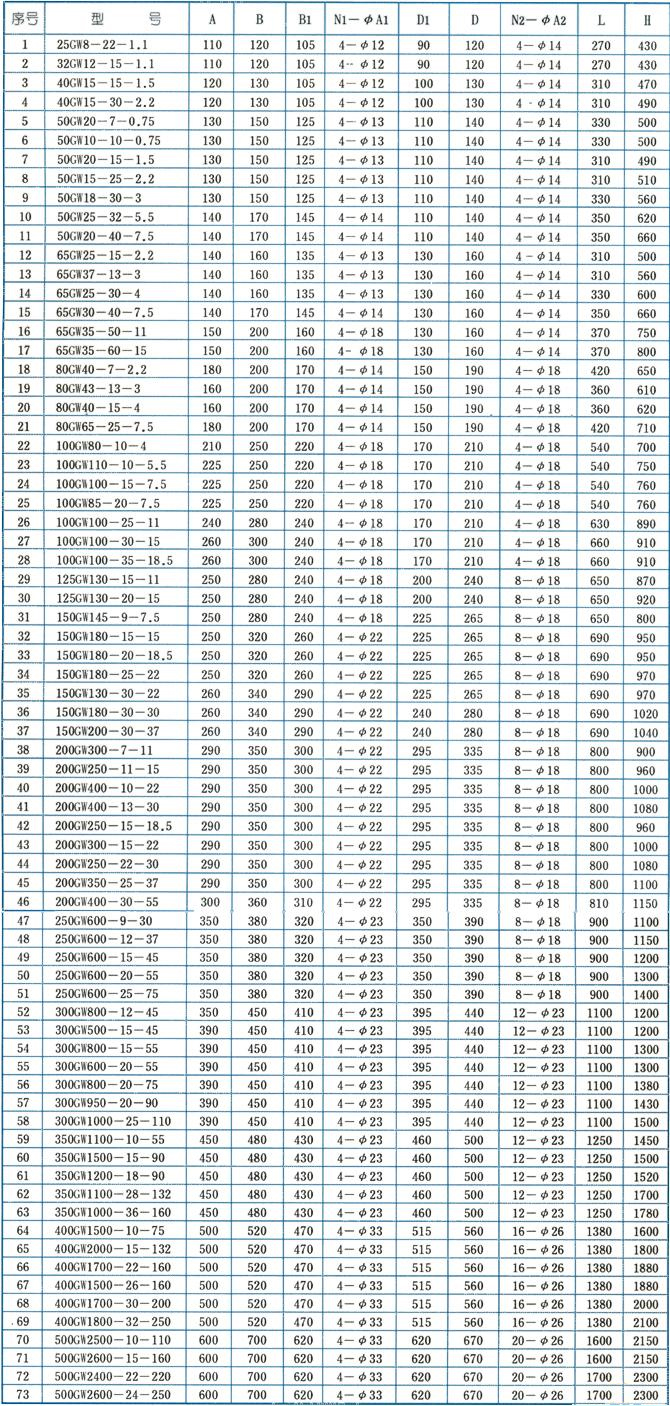 GWP不锈钢立式管道排污泵性能参数: