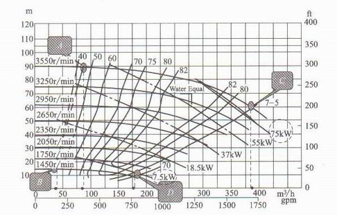 在变转速下泵的*小流量限制是有众多不同速度下的泵的性能曲线上左侧的*小流量限制点所形成的一条*小流量限制线(由A、B 两点连成的线),如图2-43所示。在变转速下泵的*大流量限制是由众多不同转速下的泵性能曲线上*右端的限制点所形成的一条限制线(如由C 、D两点连成的线)。