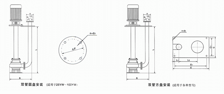 9.泵有单管安装和双管安装两种,支承件有圆盘和方盘安装。