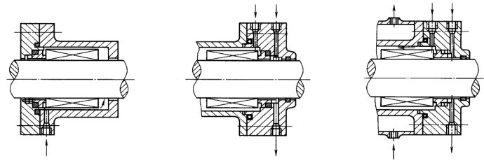图1--24冲洗冷却机械密封装置 图1—25静环背部引入冷却水 图1—26密封腔外加冷却水套