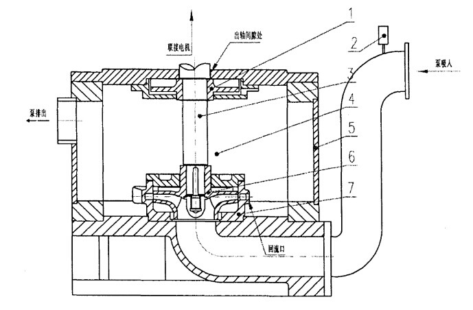 此泵实现一次引流终身自吸的功能,是依靠出水逆止阀的有效关闭和吸入管路上的空气阀的有效开、闭来实现泵停机时的存液与开机时的自吸。