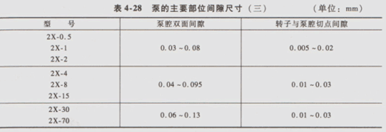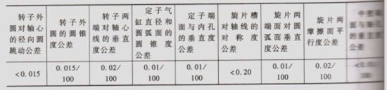 旋片泵主要零件的几何精度及主要部位间隙尺寸表: 永嘉县海坦真空泵厂泵主要零部件的几何精度