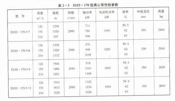 常用离心泵性能参数见表2-2和表2-3.