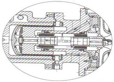 从图2-2中箭头所示,可看出润滑介质由高压进→辅助叶轮二次加压→高压出的循环模式,流通顺畅,可解决易汽化介质所产生的气蚀问题,保证了泵的性能。