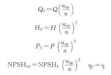 在于规定转速不符的转速下得到所有数据均应换算为以规定转速为基准的数据。流量Q 、扬程H、轴功率P、